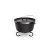Can cook over open campfires. Wash with hot water and mild detergent.