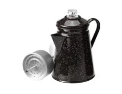 A bubbly companion for campsite, cabin, RV, or even a retro farmhouse kitchen, this handsome Enamelware pot brews 8 cups of great-tasting, old-fashioned java. Built from heavy-gauge steel with a classic speckled enamel finish, every piece has been kiln-hardened twice at 1000 degrees F to stand up to scratches and chipping.