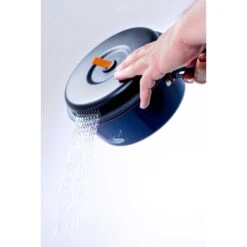 • Includes: 3 L Pot, 2 L Pot, 8″ Fry Pan, 2 Strainer Lids, Cutting Board, Folding Pot Gripper, Stuff Sack|-|Ce revêtement est la norme de référence des surfaces antiadhésives. La couche de fond adhère avec ténacité à la surface de cuisson, tandis que le revêtement de surface élimine tout collage des aliments. Ne soyez pas la dupe des imitations bon marché, ce revêtement est « la » référence des surfaces antiadhésives.