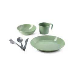 Featuring everything you need for a single plate setting, the lightweight, reusable Cascadian 1-Person Table Set from GSI Outdoors is easy to pack, stack, and carry for all your outdoor dining needs. The set includes one 9.5-inch plate, one 6-inch bowl, one 12-ounce mug, plus a full-sized fork, knife, and spoon.