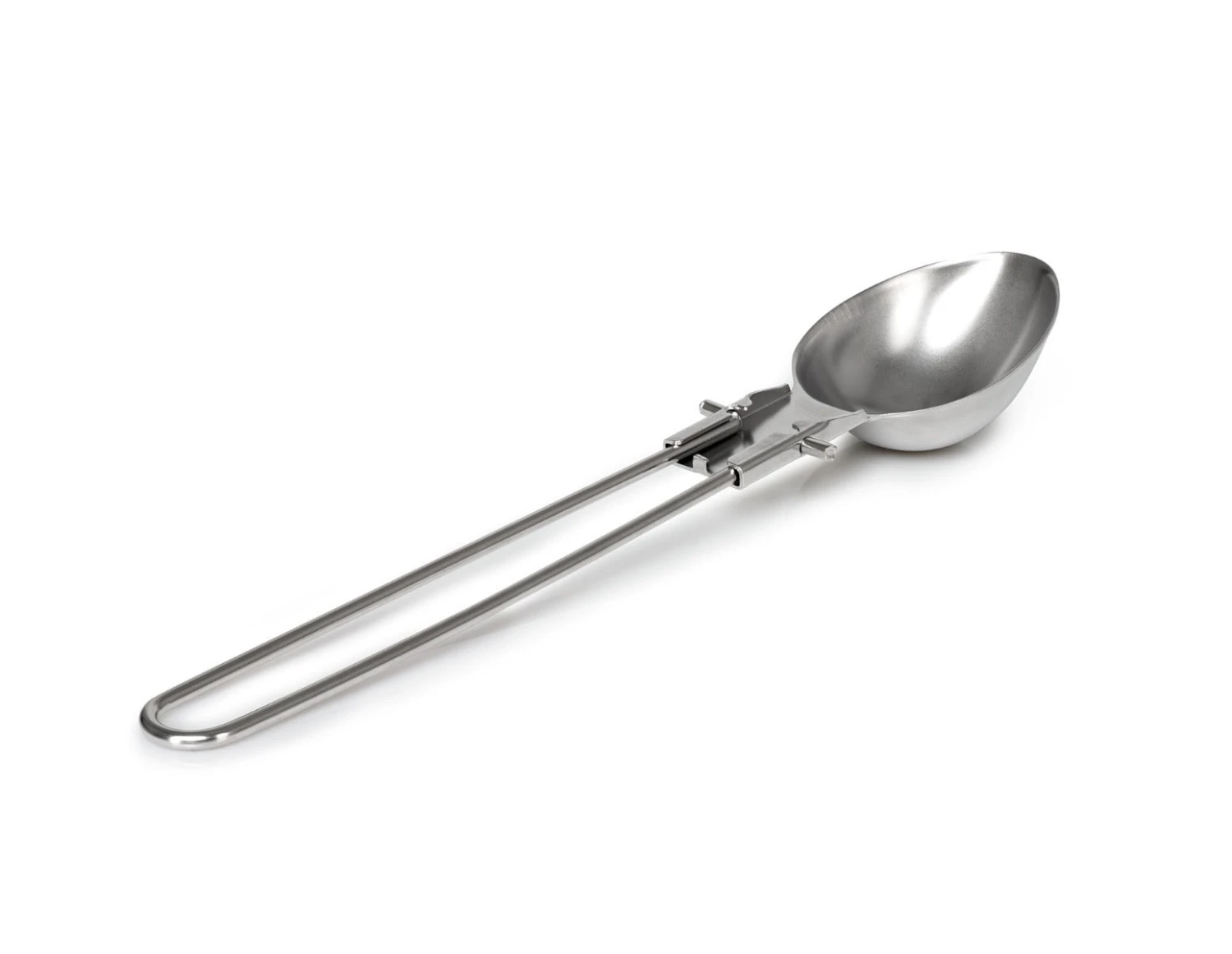 It is a spoon or is it a ladle? Its both. Tri-position handle folds over to allow for compact storage, or open to a ladle or a spoon. Made of heavy guage high quality stainless steel this spoon/ladle is designed for years of reliable service.
