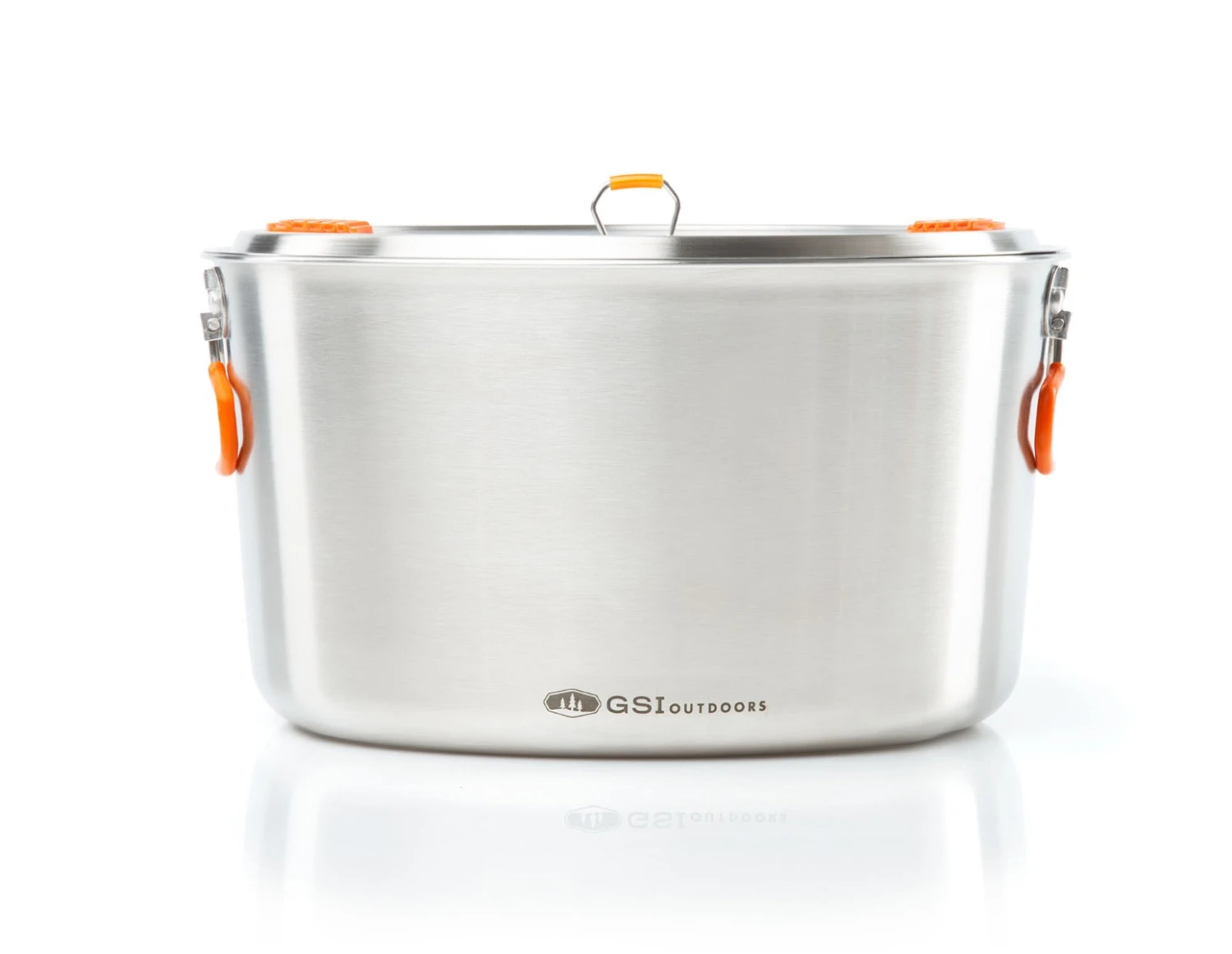 Tough enough for cooking over open flame or red-hot coals, the 5L pot makes tons of pasta, the 3L pot handles cooks up a bunch of soup or stew, and the big frying pan wrangles big breakfasts.