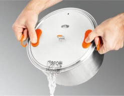 Strainer Lids make draining safe and easy, and dual bail handles on the pots give you sure, secure hold. And β since itβs all stainless steel β it handles years of abuse, cooks evenly and efficiently, and cleans up easily.