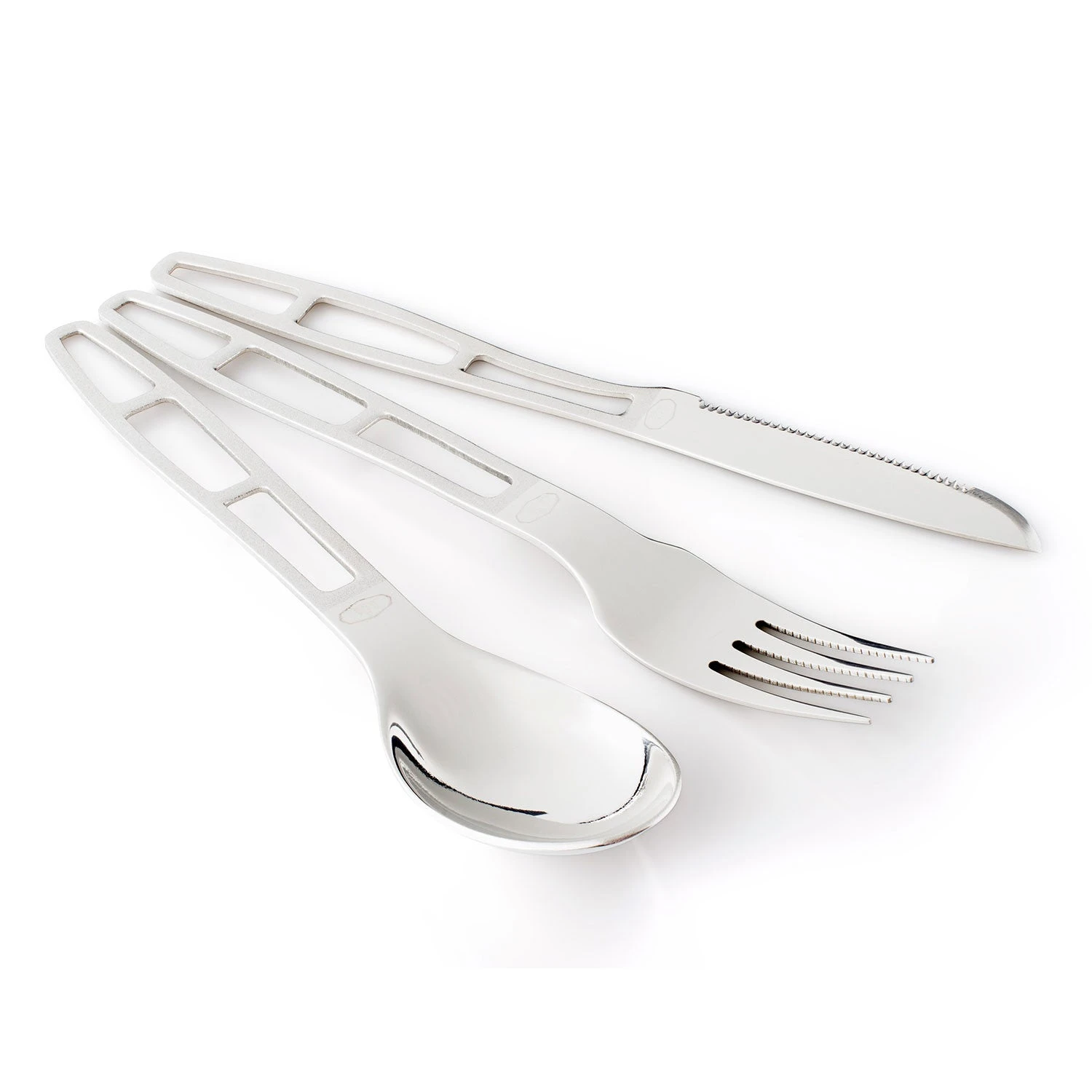 The Glacier Stainless 3 pc. Cutlery Set™ forged stainless steel construction offers a bombproof set of utensils that is light enough to pack yet still strong enough to face any adventure, high or low.