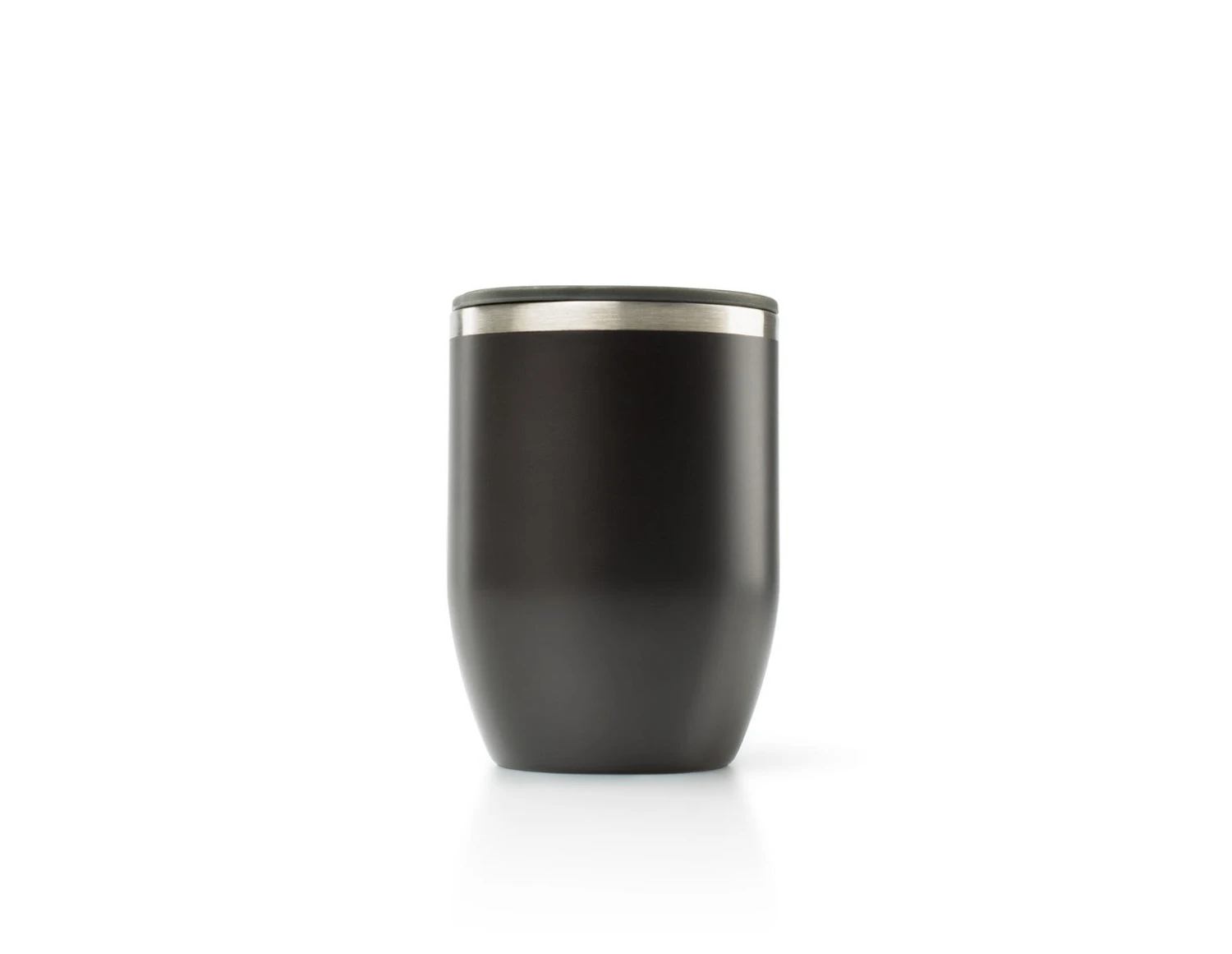 - Made of pure 304/18-8 stainless steel, this compact double-walled coffee cup keeps hot and cold beverage temperatures steady without burning hands or forming condensation.
