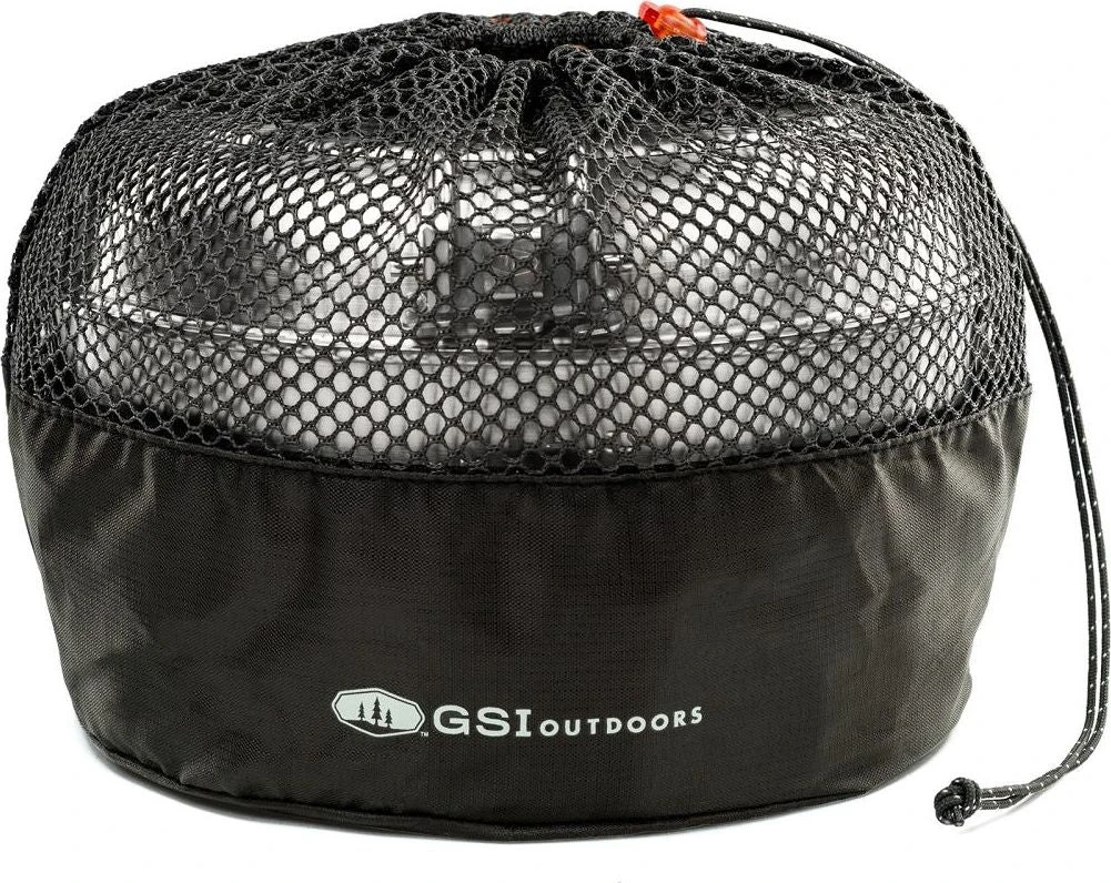 • Four-person system includes: 5L pot, 3L pot, 9″ fry pan, two strainer lids, mesh stuff sack