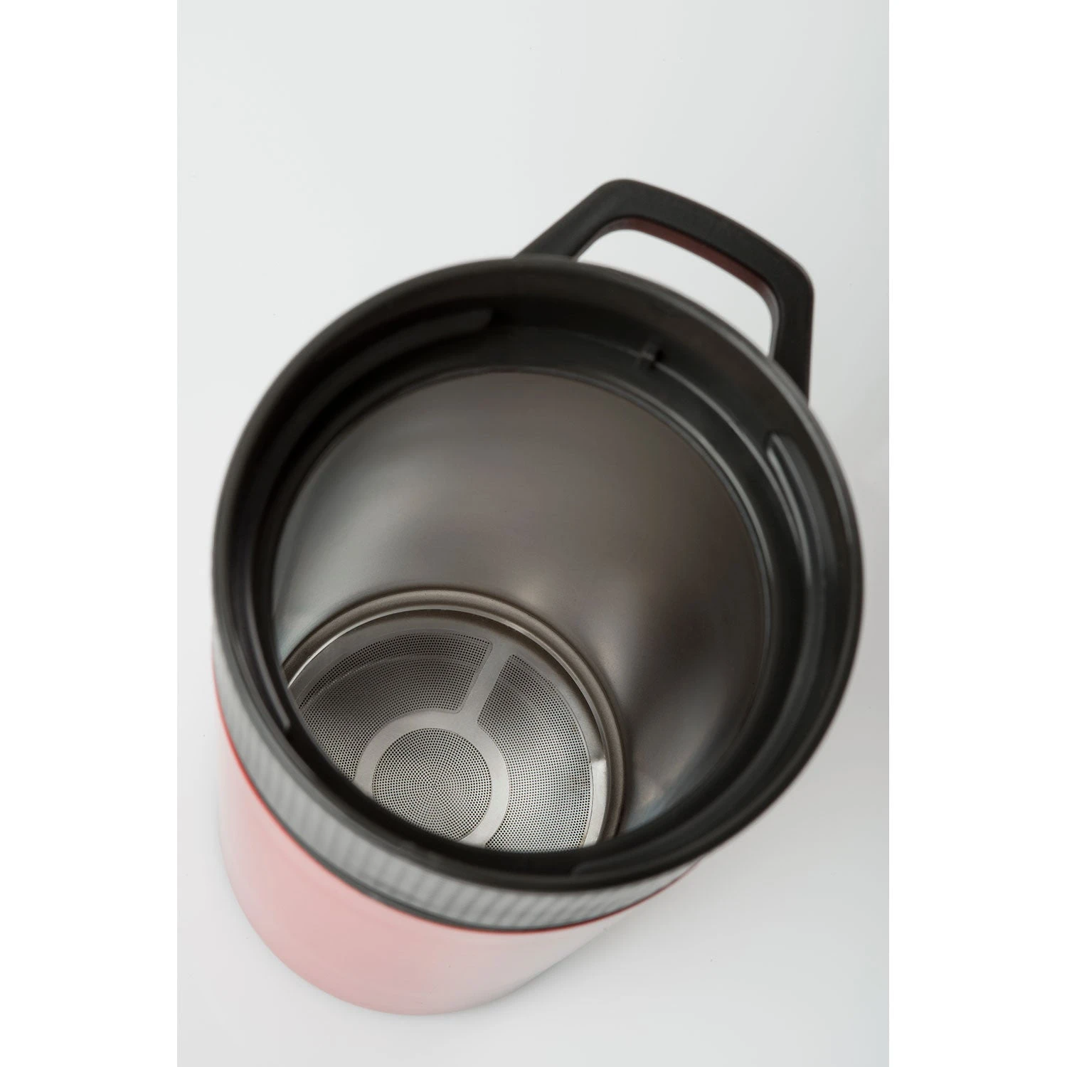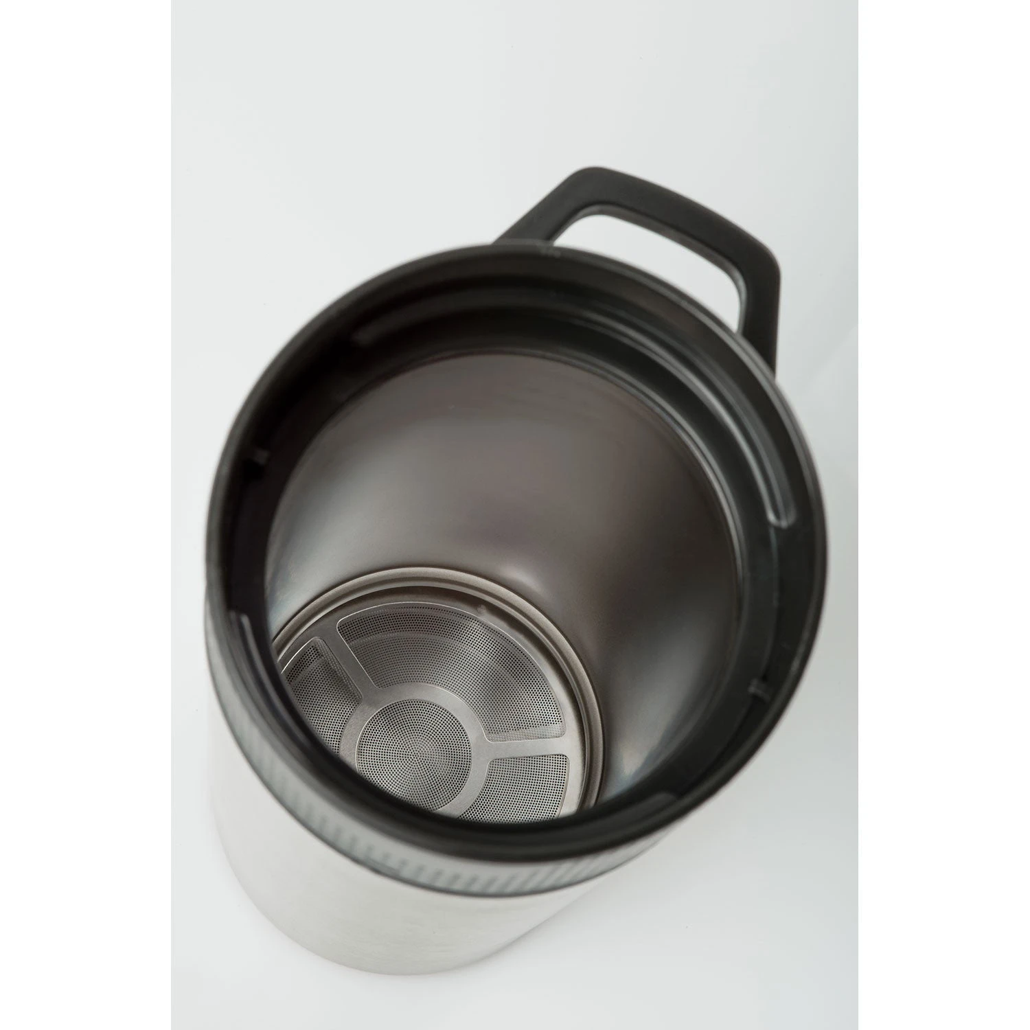 • Comprend : Tasse-cafetière de 14 oz, Ouverture coulissante, Couvercle, Tasse intérieure, Tamis en acier inoxydable de 200 µm , Boucle, Tasse extérieure, Base antidérapante