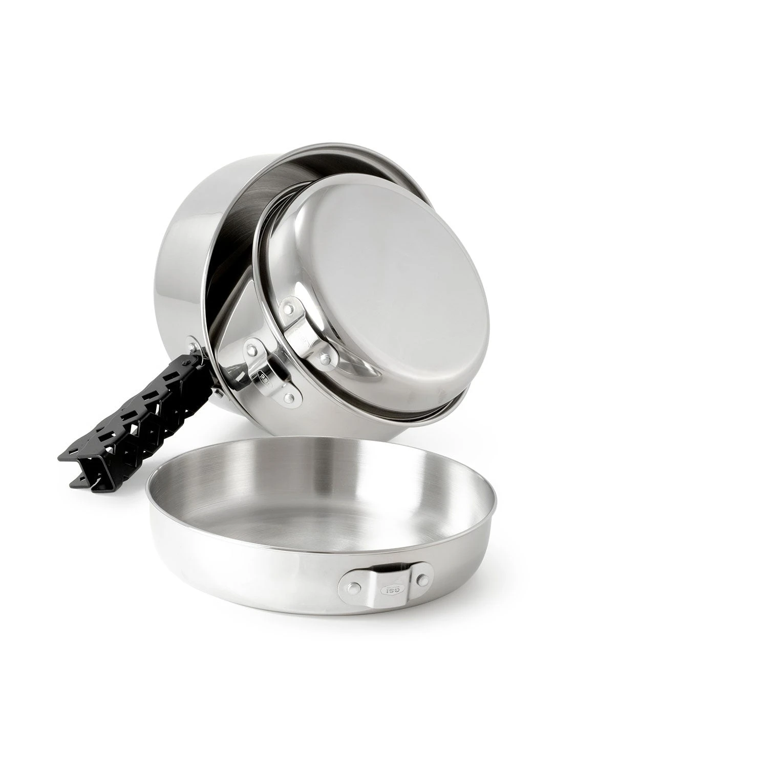 • Lightweight, nesting design with dual-use frypan/lids packs small, travels easily and withstands abuse.