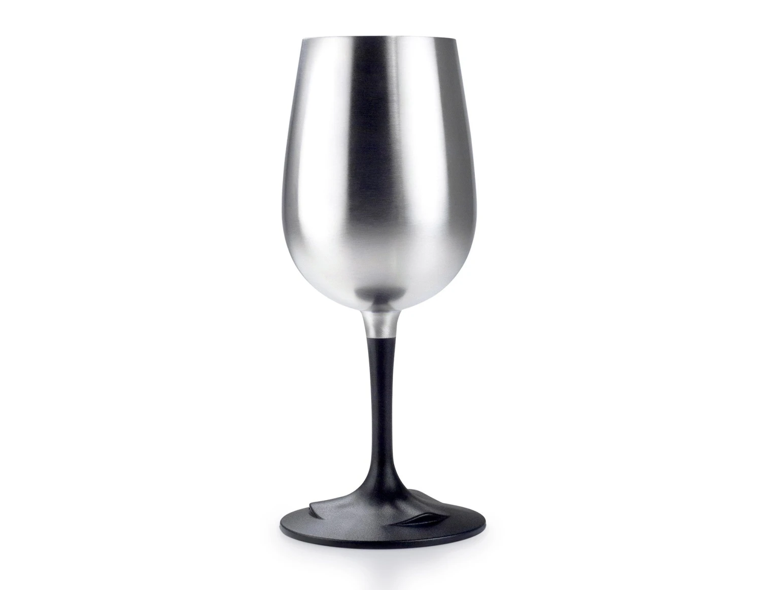 Made of rugged stainless steel, the Glacier Stainless Nesting Wine Glass’ compactly nesting size and lightweight design goes wherever you do. The unique stem design unscrews to allow the base to be compactly snapped into the bowl for storage.