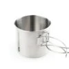 This camp classic 12 fl. oz. Glacier Stainless Sierra Cup is designed to ladle water. 18/8 stainless steel, folding handle cup. Made of ultra-rugged Glacier Stainless steel. The wire handles fold flat to save space and extend for a little extra reach so you don’t end up in the creek.