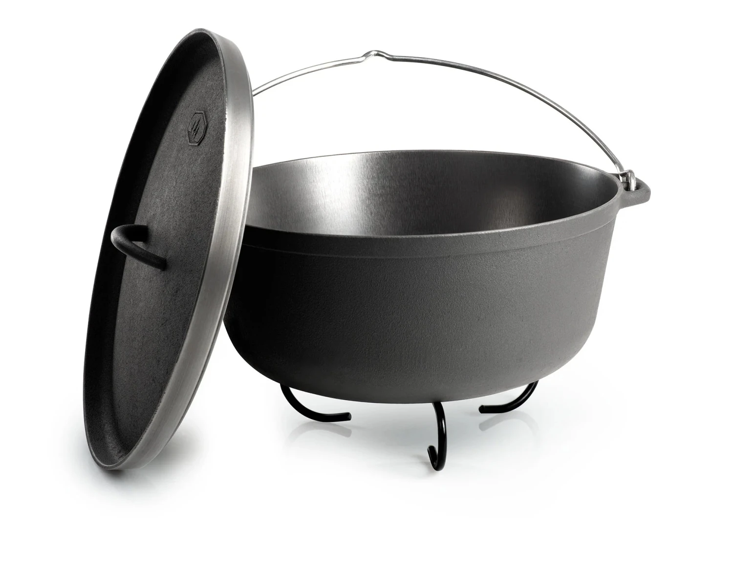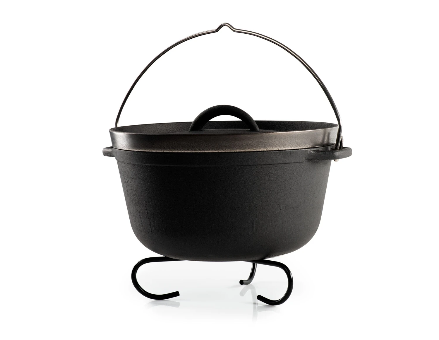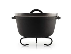 Gourmet, lightweight cast-iron Dutch oven is 25-40% lighter than conventional cast iron Dutch ovens, while offering uncompromising cooking performance. Polished interior and exterior bottoms perform on all cooking surfaces, from a campfire to an induction stove.