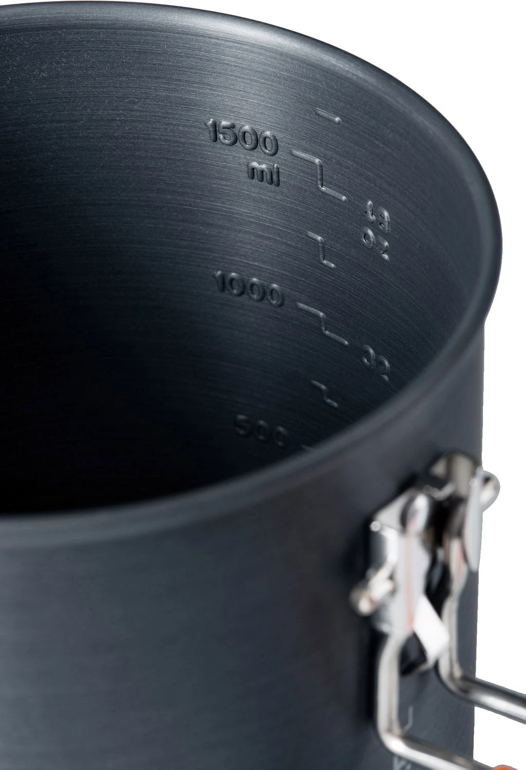 Behold the Halulite Boiler, the ever ebullient backpacking basic that’s anything but. With Halulite’s highly conductive, hard anodized exterior, this boiler heats evenly and effortlessly at any elevation. And with handy details like a folding, locking handle, helpful graduations and novel niche for nesting a stove and fuel canister, this is one pack-friendly pot you’ll never want to part with.