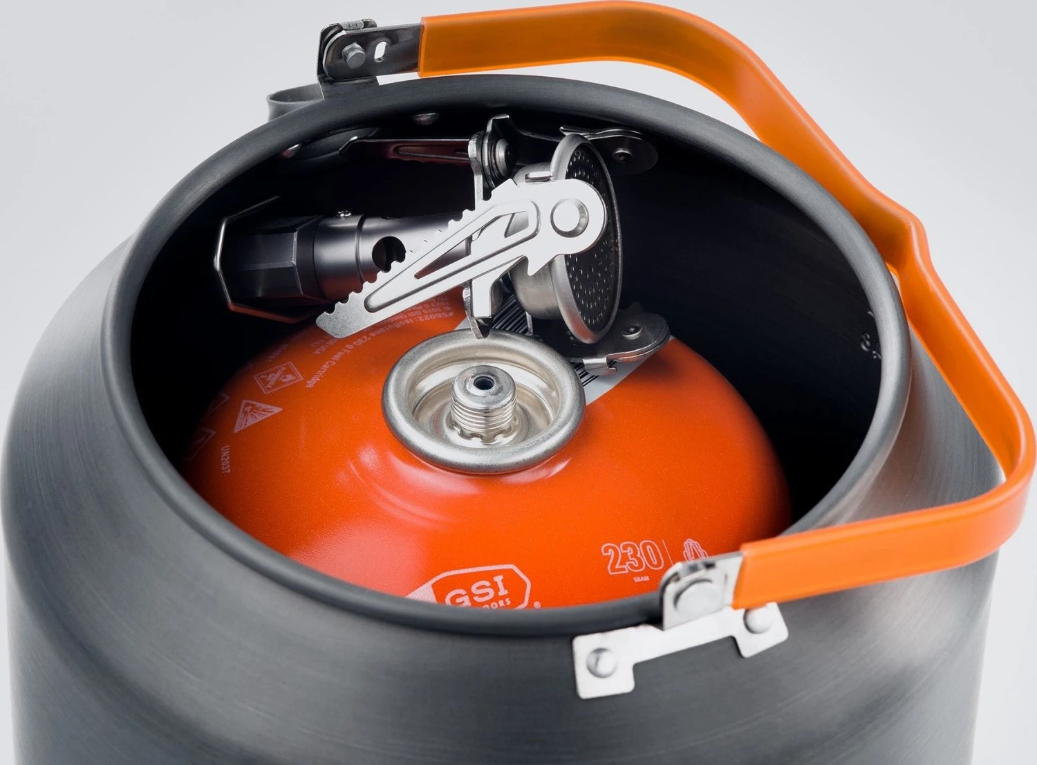 Classic, low-profile design provides the capacity of a 1 liter ultralight boiler in the easy-to-pour profile of a tea kettle for boiling water or melting snow on solo adventures.