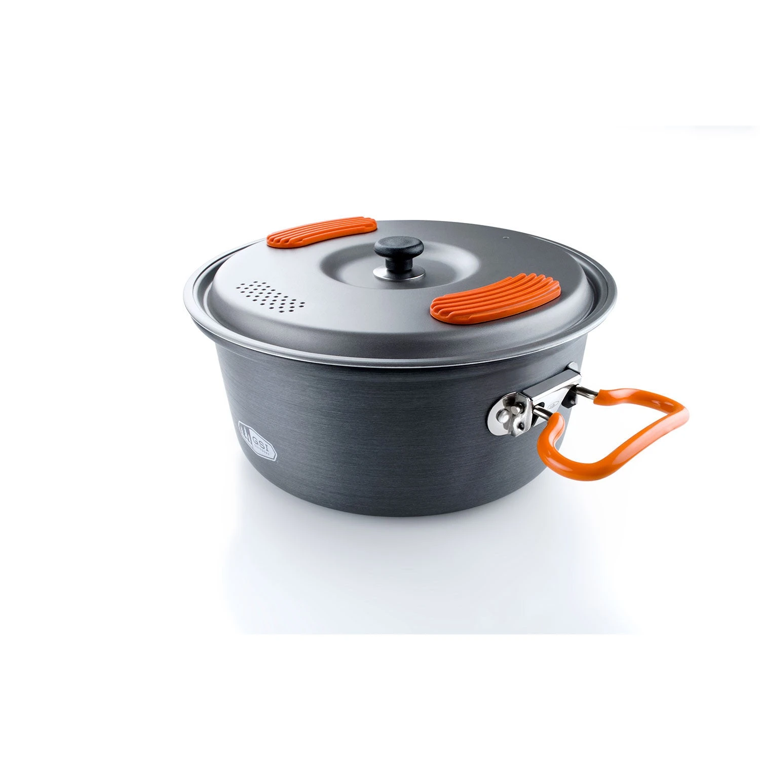 Halulite hard anodized aluminum provides superior conductivity to titanium while still being incredibly light meaning that this 2 liter pot cooks more efficiently so you can go farther and carry less fuel. The integrated silicone thumb pads on lid make straining pasta safe and secure.