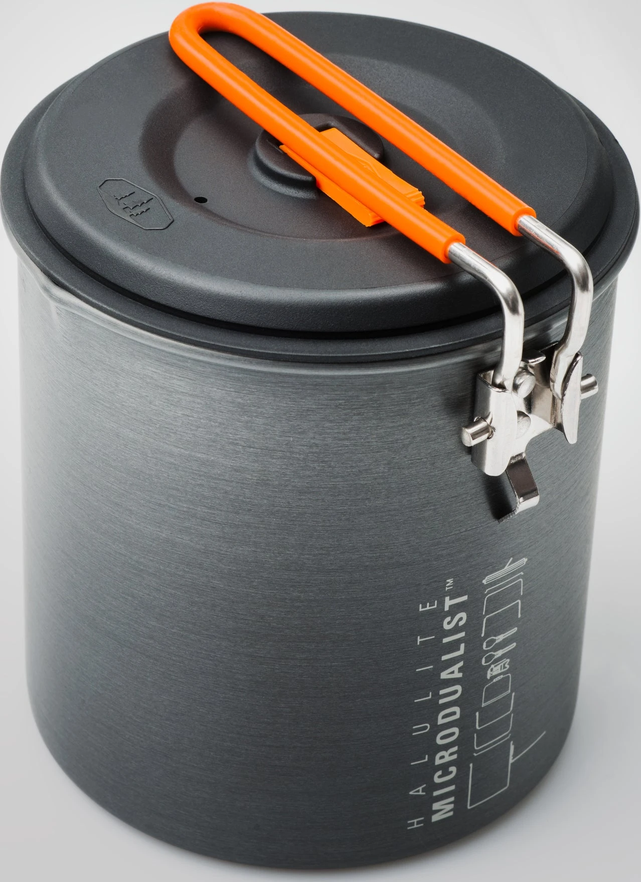 • Halulite™: Say goodbye to scratches, burn circles and ounces. As light as Titanium, Halulite is a proprietary alloy that also conducts heat better and more evenly—so you can leave the extra fuel at home. Plus, every piece is Hard Anodized to create a surface that withstands scratches and abrasions like nothing else. It’s ultra light without the sacrifices. Now that’s smart.