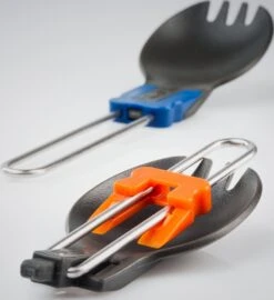 • Clever folding foon design compacts to just 3.7” long, but extends and locks to become a 6.1” fork-spoon hybrid