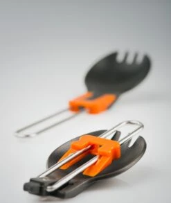 • Clever folding foon design compacts to just 3.7” long, but extends and locks to become a 6.1” fork-spoon hybrid