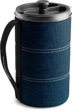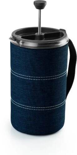 • Double-walled, insulated lid and ballistic nylon-wrapped cozy hold in temperature while brewing and serving.