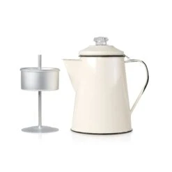 A bubbly companion for campsite, cabin, RV, or even a retro farmhouse kitchen, this handsome Enamelware pot brews 8 cups of great-tasting, old-fashioned java. Built from heavy-gauge steel with a classic speckled enamel finish, every piece has been kiln-hardened twice at 1000 degrees F to stand up to scratches and chipping.