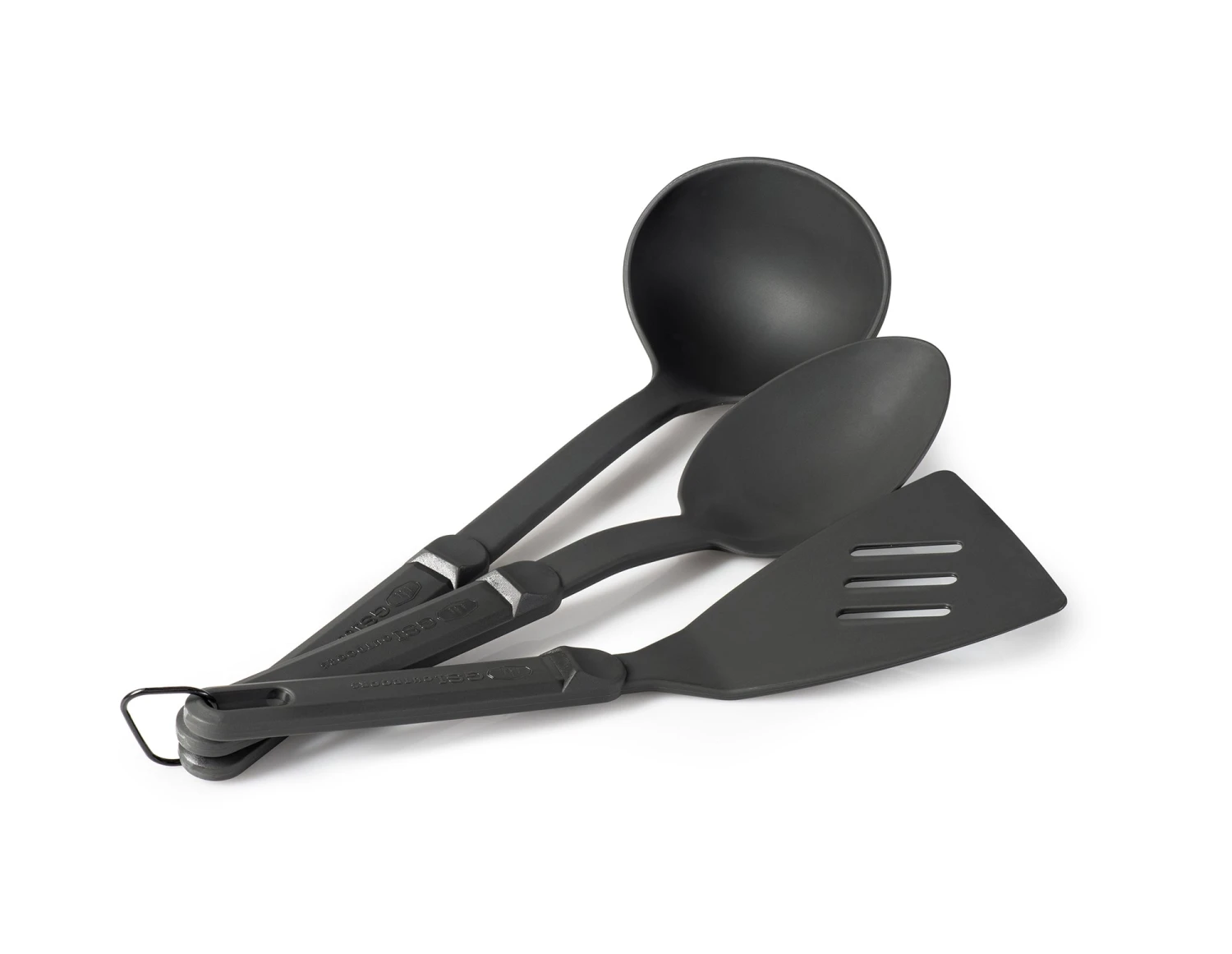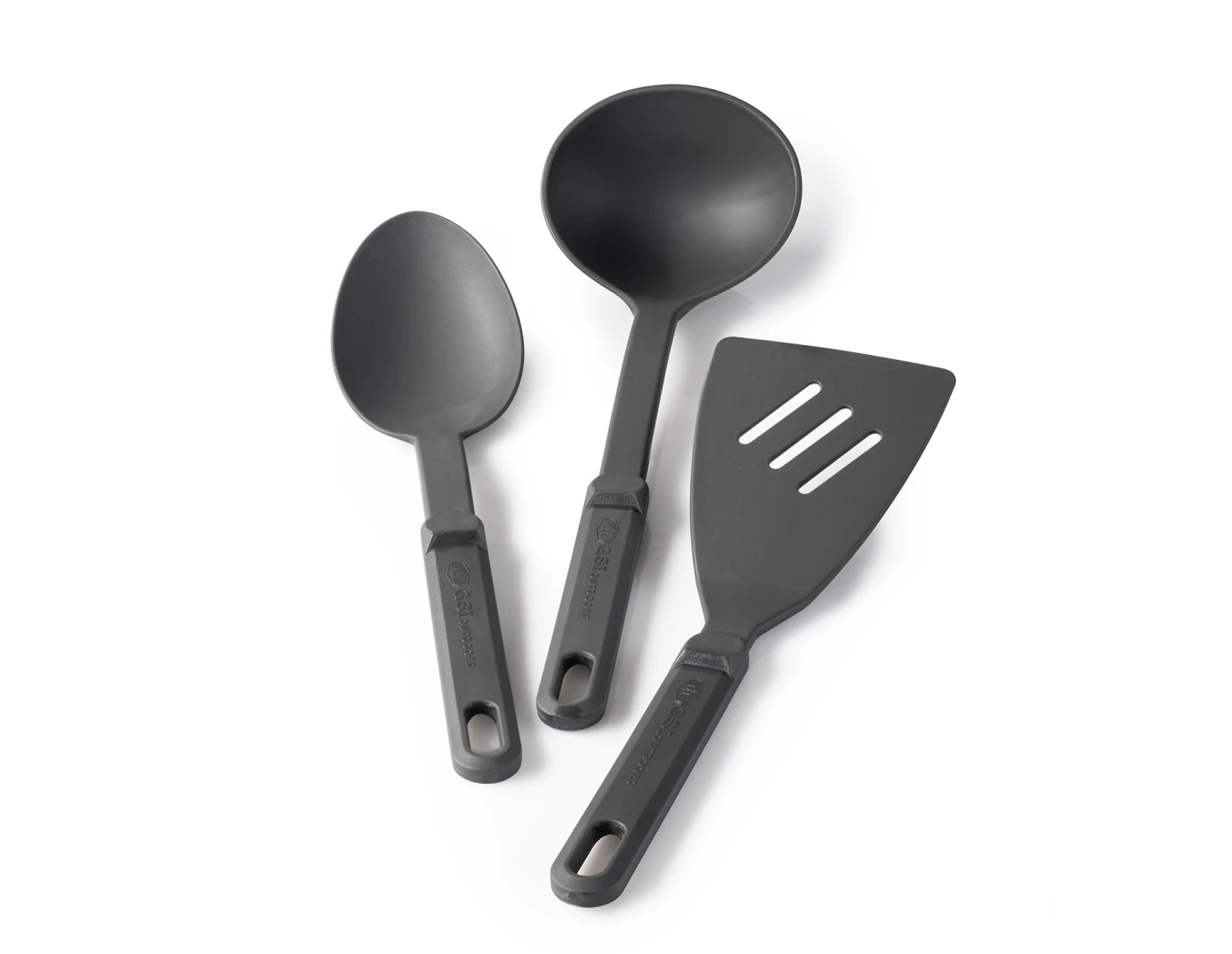 Durable Nylon 3 pc. Ring Set. A complete set that covers the full-spectrum of culinary camp needs, the spoon, spatula and ladle won’t scar non-stick surfaces, and they’re built to withstand extremely high temperatures.
