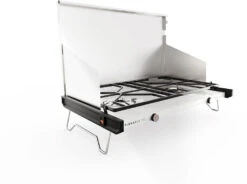 • Includes: Regulator, 2 Burner Heads, Pot Support, Upper Windscreen, Side Windscreens, Igniter, Handle, 2 Flame Adjusters