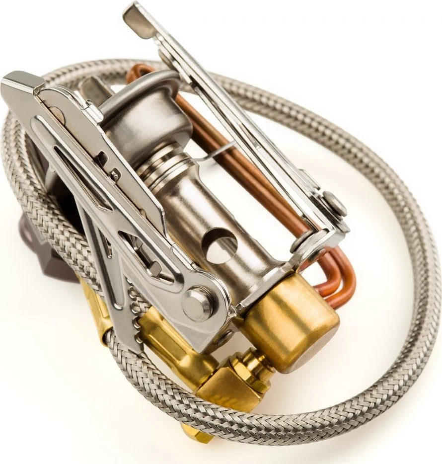 • Dimensions: 2 in x 1.8 in x 3.2|-|Compact mais puissant, le réchaud quatre saisons Pinnacle est relié à la cartouche de combustible au moyen d’un tuyau d’alimentation. Vous pouvez donc utiliser un pare-vent pour protéger la flamme sans faire surchauffer le combustible. Cela vous permet également de renverser la cartouche pour tirer le maximum du combustible et de l’éloigner du sol pour accroître sa performance par temps froid. La petite soupape de commande vous procure un contrôle constant de la flamme, ce qui réduit le risque de brûler votre souper.