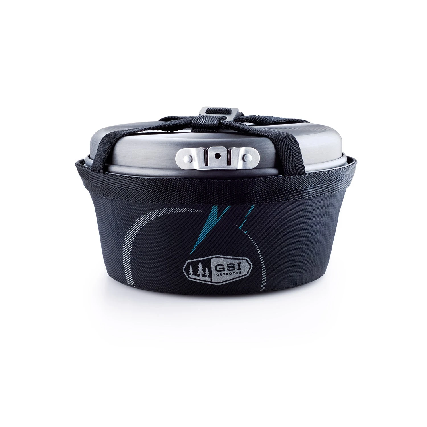 • Includes: 2 L Pot, 1.5 L Pot, 8″ Fry Pan, 2 Strainer Lids, Cutting Board, Folding Pot Gripper, Welded Sink|-|Ces récipients en aluminium anodisé dur, à revêtement antiadhésif et durable, offrent le summum en matière de conception, d’efficacité de l’espace et de performance de cuisson. L’ensemble comprend un pot de 1,5 litre avec couvercle à filtre, qui à son tour se niche dans une généreuse casserole de 2 litres avec un couvercle à passoire. Le kit comprend également une pince à casseroles, une poêle à frire ainsi qu’un grand sac de transport pouvant servir d’évier de cuisine.