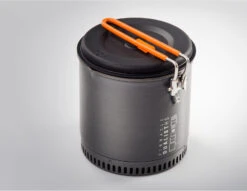 Then we added our hyper-conducting heatsink to speed cook times by 30% so you save fuel and time. The kit also includes all your eating gear and canister stove. Nesting perfectly into the pot with room for your fuel canister are two 20oz wide-mouth mugs with insulated sleeves and Sip-It lids, two 20 oz bowls, and a couple of Foons our folding spork and our Pinnacle Canister Top 10,000 BTU Stove.