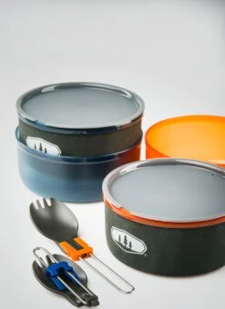 • Pot holds a 220g canister, a small folding LPG stove and the included dishware. (Note: stove and canister are not included.)|-|Un ensemble de cuisson compact et ultraléger pour les aventures en duo. Inspirée du modèle éprouvé Dualist, la casserole comporte un dissipateur thermique pour accélérer la cuisson et économiser le combustible, ce qui vous permet d’apporter moins de cartouches et d’alléger votre sac à dos. Les matériaux légers et le design emboîtable rendent cet ensemble facile à transporter lors des sorties de quelques jours ou des longues expéditions.