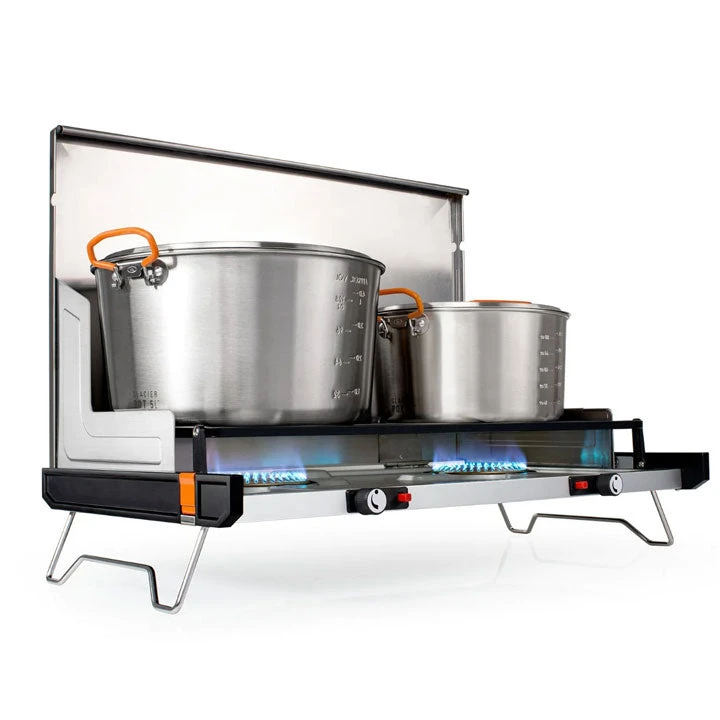 The Pinnacle Pro Stove is the culmination of 4+ years of research and design to produce the thinnest, high-performance dual-burner stove on the market. After the pre-production prototype for this stove won the prestigious Gear Junkie Best of Show award at the Winter 2019 Outdoor Retailer Show, we knew we had nailed the perfect design for those looking for an awesome cooking experience, whether at base camp or tailgating at a football game (when we can do that again, of course!).