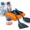 A perfect complement to GSI Outdoors’ line of classic enamelware, this three-piece utensil set includes a spoon, ladle, and spatula crafted from rugged heavy-gauge steel with speckled enameled accents. Full-length tangs ensure quality and durability.