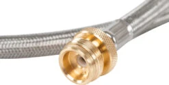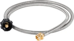 No need to buy throwaway 1lb canisters anymore. This durable 5″ stainless Propane gas hose will fit to a larger Type-1 fuel tanks. Can be used with all propane appliances that use Type 1 fuel canisters. 5ft braided stainless steel hose conveniently connects portable appliances to a larger propane tank