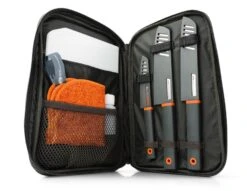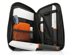 The Santoku Knife Set is a gourmet prep set perfect for camping, the beach or backyard cooking. Keep all your prep gear securely and neatly organized no matter where your knife skills are.
