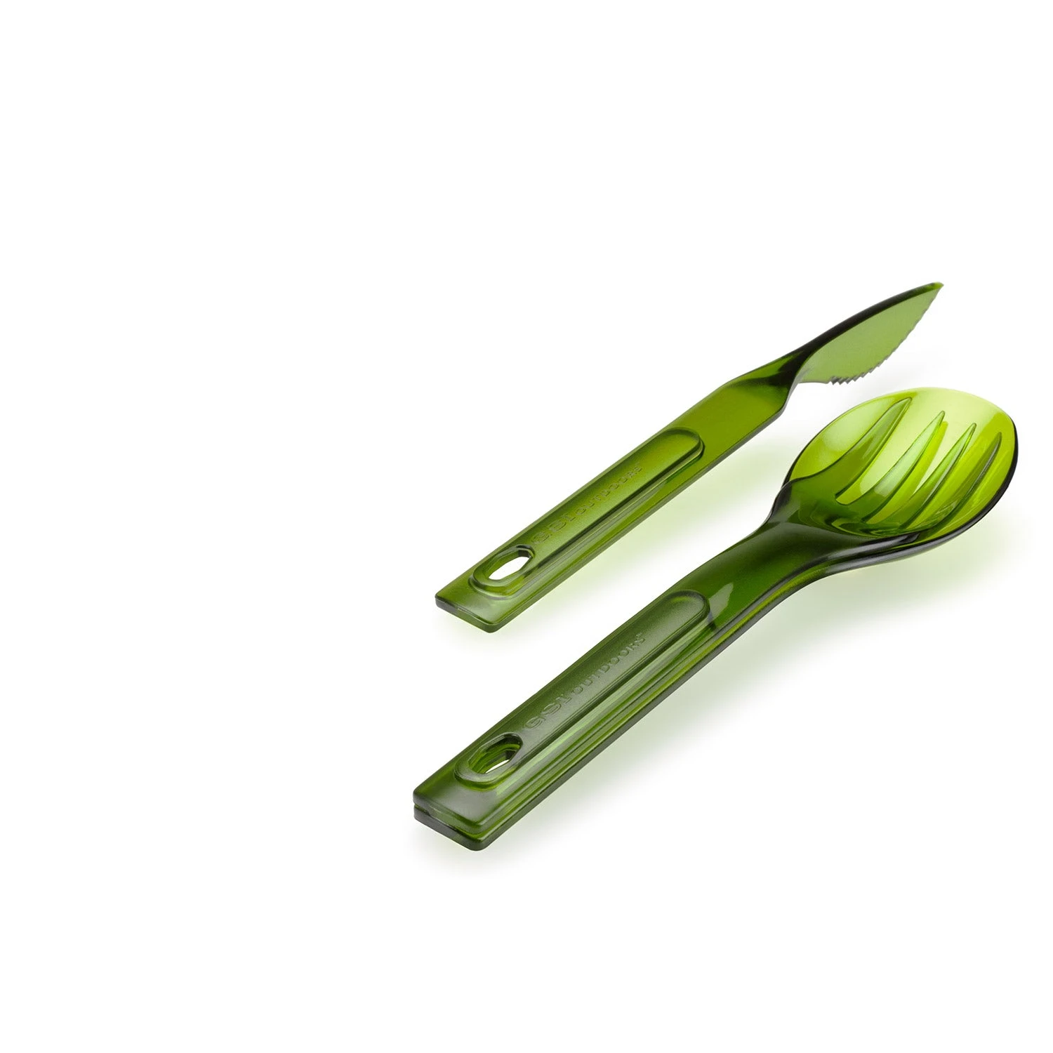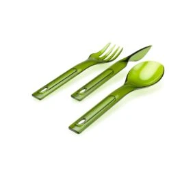 Designed to integrate with its nFORM line of tough camp-kitchenware. The fork, knife, and spoon snap together for convenient packability, and come in bright colors for variety and easy identification when everyone’s gear gets tossed together on the camp table.