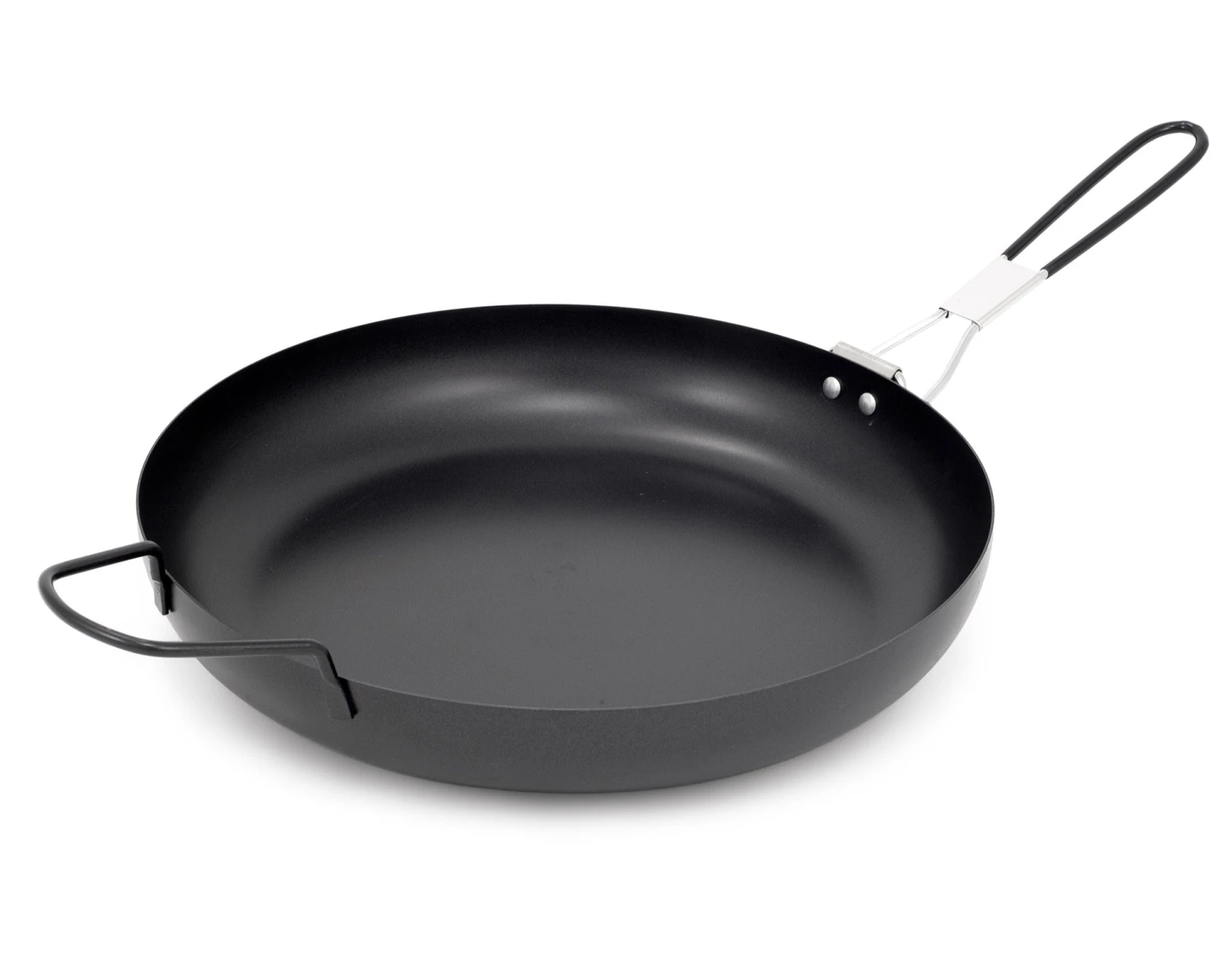 The rugged Steel Frypan is non-stick coated, a kitchen essential for gourmet meals while camping, backpacking, and relaxing at the cabin.