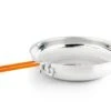 The 9- and 12-inch Steel Frypan models feature GSI’s SureLock folding handle, which provides a sturdy, stable grip over the stove top, grill, or open fire and conveniently folds into the pan for storage and transport.