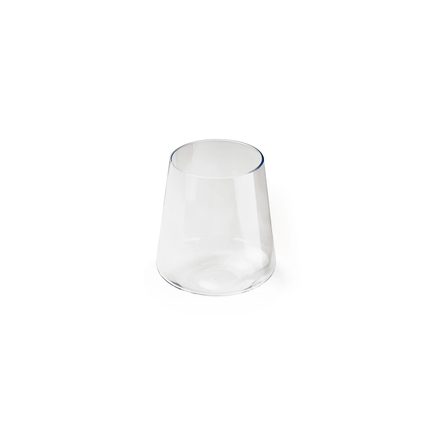 The stem-less design of this white wine glass creates a very low center of gravity for surprising stability even on rocky, unstable camp terrain or rickety camp tables.